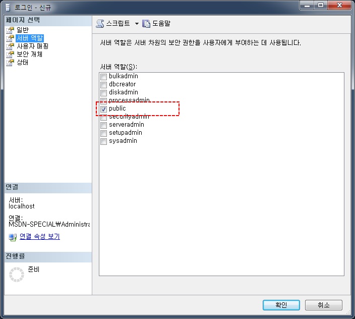 3. 서버 역할을 클릭하시면 public에 체크가 되어 있습니다. 그대로 두고 사용자 매핑을 선택합니다.