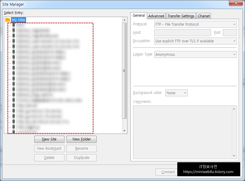 PC에서 설정된 사이트 관리자(Site Manager)정보를 다른 PC에 동일하게 설정을 해야 하는대 일일이 손으로 입력을 하기에는 잘 못 입력을 할 수도 있고, 너무 많아 시간이 오래 걸릴 수 있습니다.