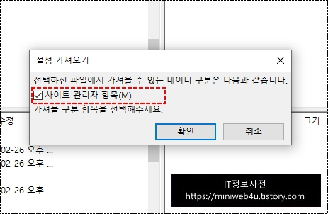 이제 백업파일을 신규로 설정하실 PC로 복사하신 후에 Import(가져오기)를 클릭하셔서 백업파일을 선택합니다.