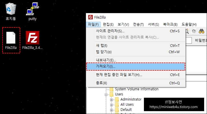 이럴때 파일질라(FileZilla)의 내보내기/가져오기를 이용하여 설정 정보의 백업 및 복원이 가능합니다.
