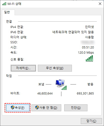 3. 연결되어 있는 네트워크의 속성을 선택합니다.