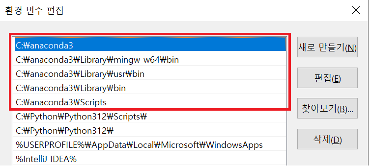 ※ 환경 변수에 등록하면 아나콘다 설치 위치가 아니더라도 쉽게 접근이 가능해요