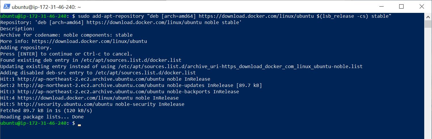 ~$ sudo add-apt-repository "deb [arch=amd64] https://download.docker.com/linux/ubuntu $(lsb_release -cs) stable"