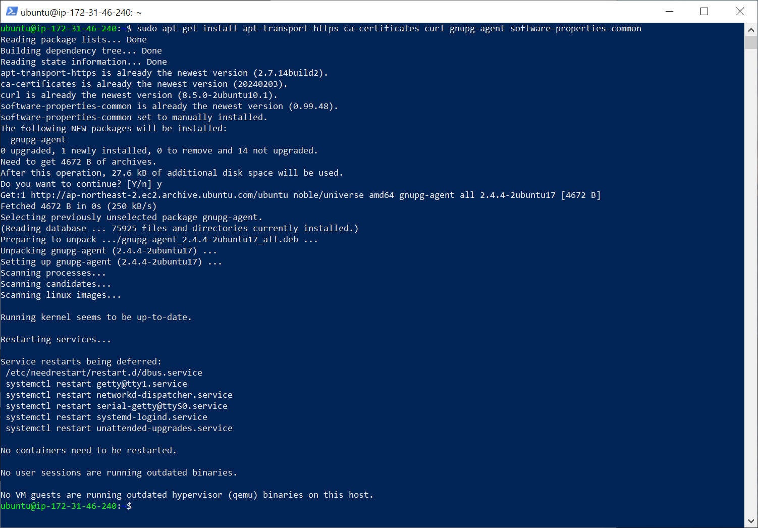 ~$ sudo apt-get install apt-transport-https ca-certificates curl gnupg-agent software-properties-common