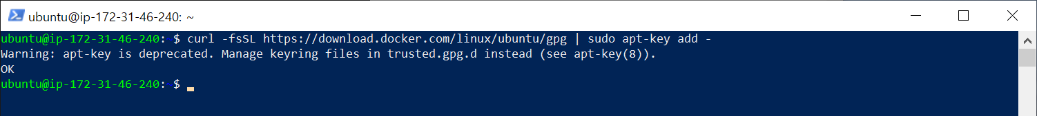 ~$ curl -fsSL https://download.docker.com/linux/ubuntu/gpg | sudo apt-key add -