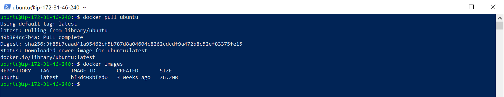 3-1. 아래 명령어를 통해 도커(Docker) Ubuntu 이미지를 다운받을 수 있고 확인 할 수 있습니다.