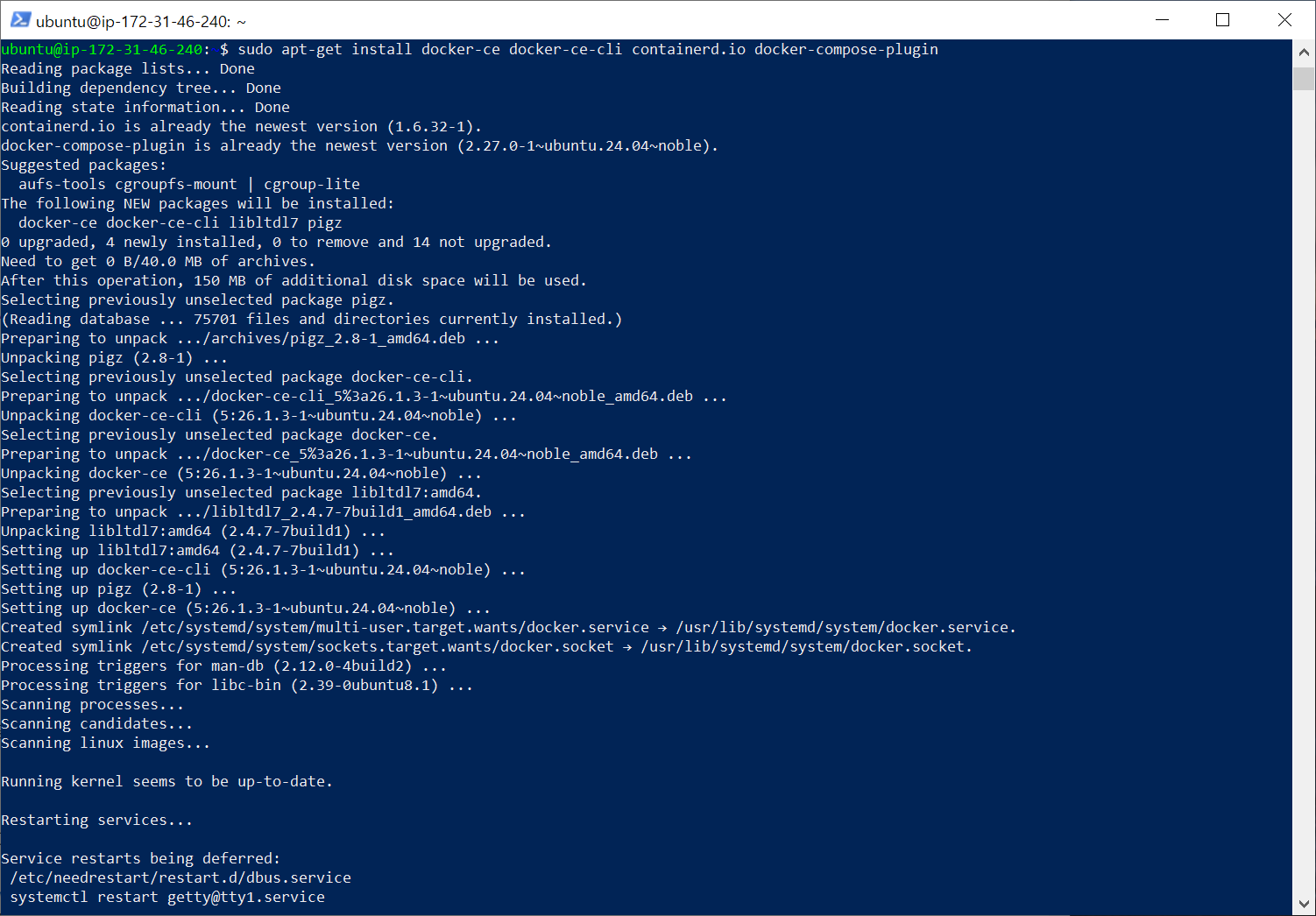 ~$ sudo apt-get install docker-ce docker-ce-cli containerd.io docker-compose-plugin
