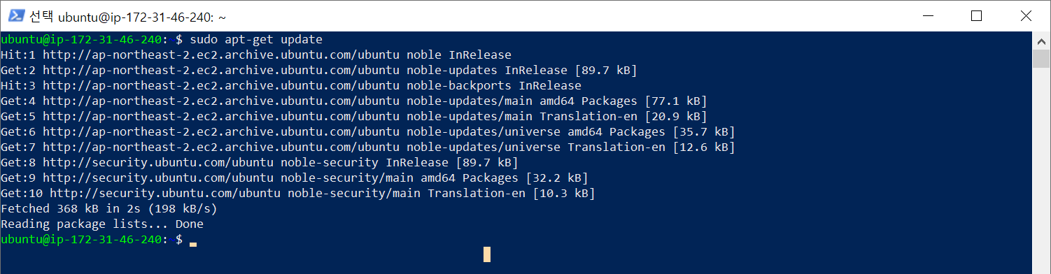1-5. 다시 apt update 명령으로 패키지를 업데이트 합니다.