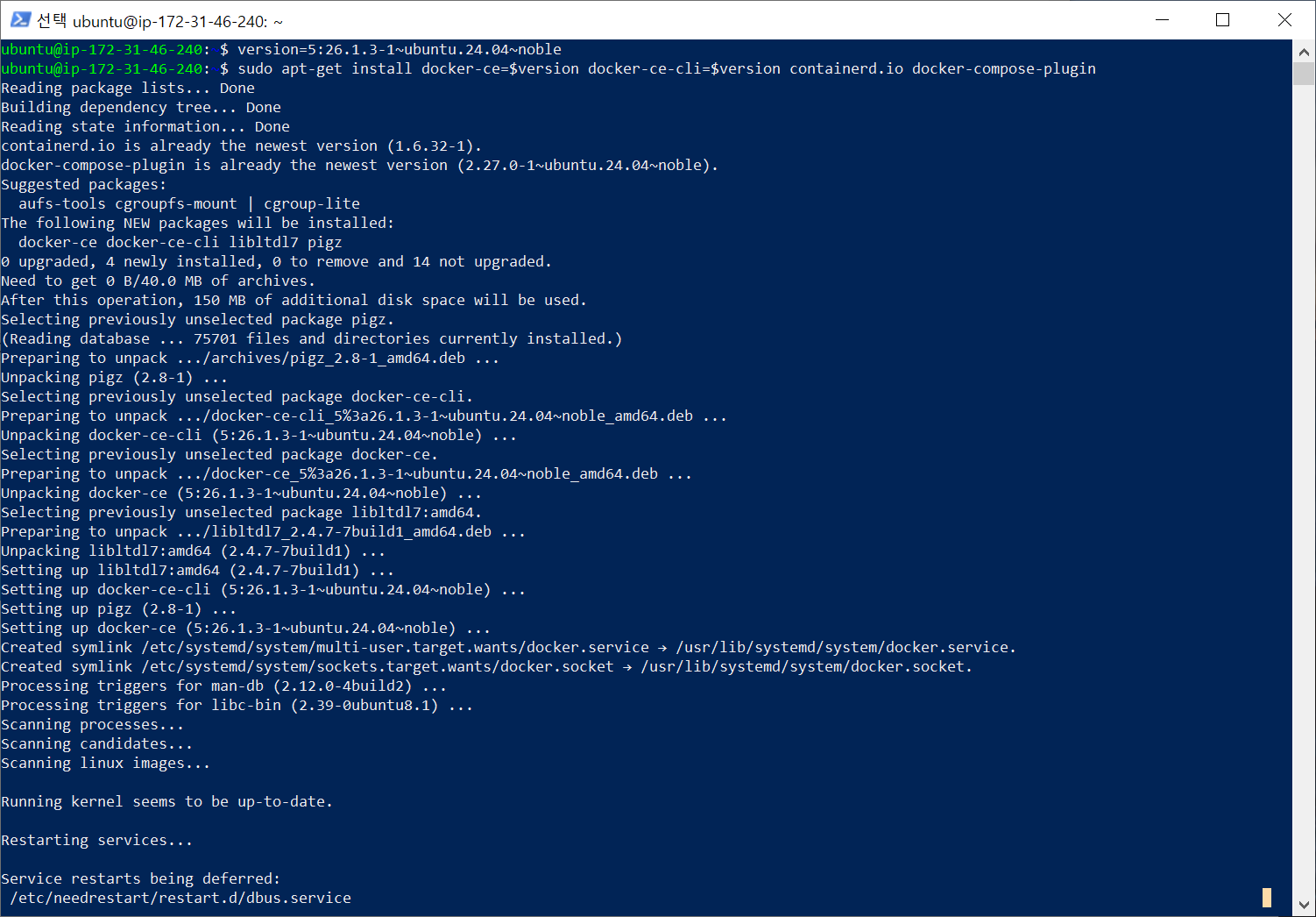 ※ 아래 명령어는 도커(Docker) 가장 최신버전이 설치됩니다.