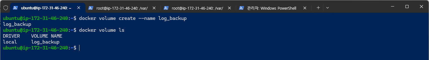 ~$ docker volume create --name log_backup